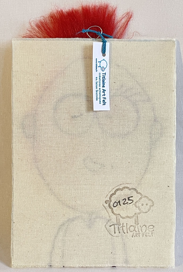 Vendu sans le cadre pour des envois légers. Un crochet est fixé au dos entre la laine et l'entoilage résistant pour une bonne tenue.